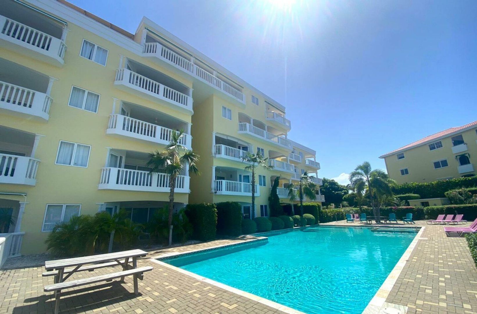 Te koop: Appartement Blue Bay Dit lichte, moderne appartement is gelegen in het prachtige Blue Bay Golf en Beach Resort Curaçao. Blue Bay is een resort voorzien van alle luxe, zoals een prachtig palmenstrand, koraalriffen, 18-hole golfbaan, tennisbaan, winkels, restaurants en een duik- en zeilschool. Ook kunt u elke vrijdag genieten van livemuziek tijdens het gezellige happy hour. De perfecte wijk voor eenieder die wil genieten van een luxe, veilige woonomgeving met alle voorzieningen binnen handbereik. Blue Bay Golf en Beach Resort is een high-end gated resort centraal gelegen op het eiland Curaçao. Bent u op zoek naar een appartement met uitstekende verhuurmogelijkheden? Dan is dit een unieke kans. Het appartement dat wij aanbieden is uitermate geschikt voor vakantieverhuur, maar kan ook op lange termijn verhuurd worden. De bezettingsgraad van 2022 was uitstekend en ook voor 2023 zien de bezettingscijfers er zeer goed uit. Het appartement wordt aangeboden zonder meubilair, maar kan tegen een meerprijs volledig gemeubileerd worden opgeleverd zoals op de foto’s. Het appartement op de derde verdieping is te bereiken via de trappen of met de lift. Bij binnenkomst betreedt u de lichte woonkamer met open keuken die doorloopt naar het overkapte terras via de riante glazen schuifpui. Door het gehele appartement en het terras is de lichte tegelvoer doorgetrokken waardoor het rustig en ruim oogt. De woonkamer is voorzien van airconditioning. De ruime U-vorm keuken is recentelijk gerenoveerd en van alle gemakken voorzien waaronder een koelkast met vriezer, kookplaat incl. afzuigkap, en vaatwasser. De keuken beschikt over een bar waar u aan kunt zitten. Vanuit de woon- en slaapkamer heeft u toegang tot het royale terras waar het heerlijk relaxen is op de loungeset en u kunt genieten van het adembenemende uitzicht over het zwembad, de golfbaan en de Caribische Zee. De riante slaapkamer van het appartement is ruim genoeg voor een kingsize bed en een comfortabele zithoek en een royale walk-in closet. De slaapkamer is uiteraard voorzien van airconditioning. Vanuit uw bed kunt u genieten van het prachtige uitzicht en heeft u direct toegang tot het ruime terras. Vanuit de slaapkamer loopt u de aangrenzende moderne badkamer in die voorzien is van een dubbele wastafel, - kraan, toilet en ruime douchecabine. In het appartement is een modern gastentoilet aanwezig die te bereiken is via de hal bij binnenkomst. In deze hal kunt u tevens een was en droog opstelling plaatsen. Nieuwsgierig naar dit zeer goed renderende appartement? Neem contact met ons op!
