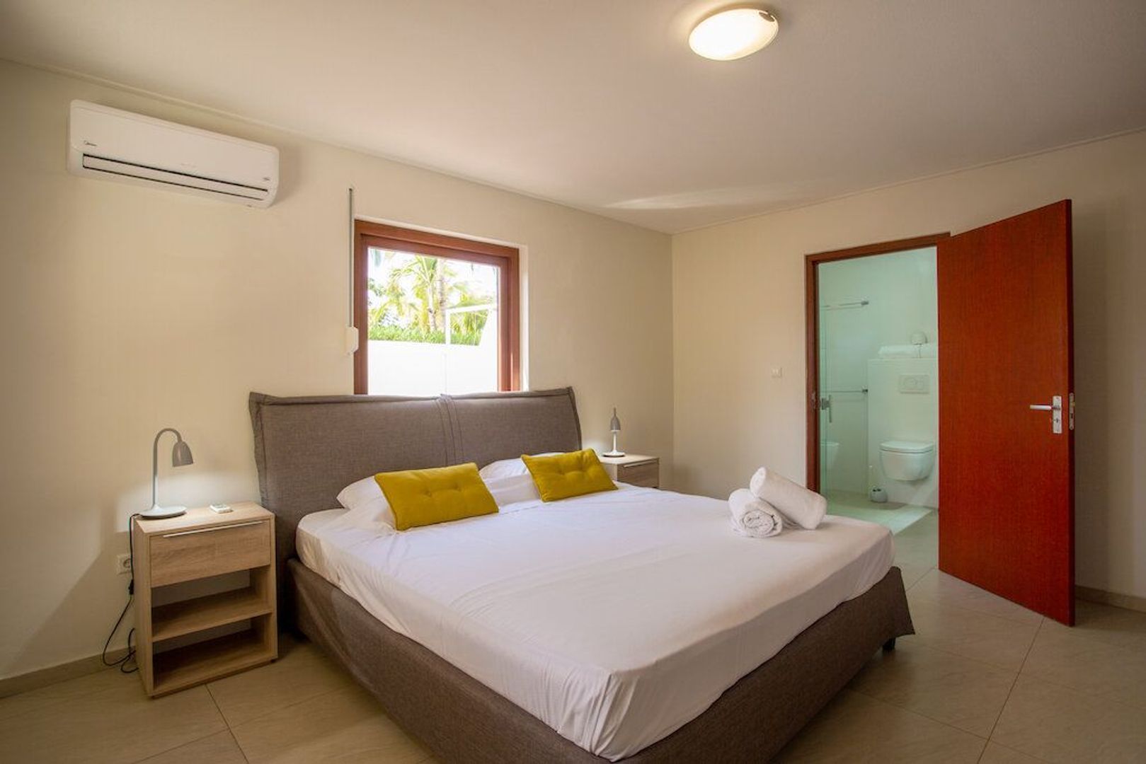 Appartementen complex direct aan het Spaanse Water Direct gelegen aan het Spaanse Water met een waterfront van 60 meter breed treft u dit zeer privé gelegen appartementen complex. Het complex bestaat uit 2 separate gebouwen met elk 2 appartementen van 150 m2. Vanuit elk appartement en vanaf elk terras is het uitzicht schitterend over het Spaanse Water. De appartementen zijn modern ingericht en hebben een fijne lichte sfeer. De ruime woonkamer met open luxe keuken loopt naadloos over in het buitenterras en de pool. Elk appartement beschikt over 2 ruime slaapkamers met eigen aangrenzende luxe badkamers, een gasten toilet en een wasruimte. Voor elk gebouw ligt een eigen, royaal zwembad van 9 x 4.5 m2 Er is een gemeenschappelijke bar waar kan worden geborreld en gebarbecued. Het gehele complex beschikt over 4 garages en 4 open parkeerplaatsen. Aan het waterfront liggen 2 steigers waar plezierboten aangemeerd kunnen worden en die tevens royal genoeg zijn om te entertainen. Het gehele terrein is volledig gelandscaped met palmen en andere tropische beplanting en heeft meerdere terrassen waar het heerlijk vertoeven is. Noodstroom voorziening is aanwezig.