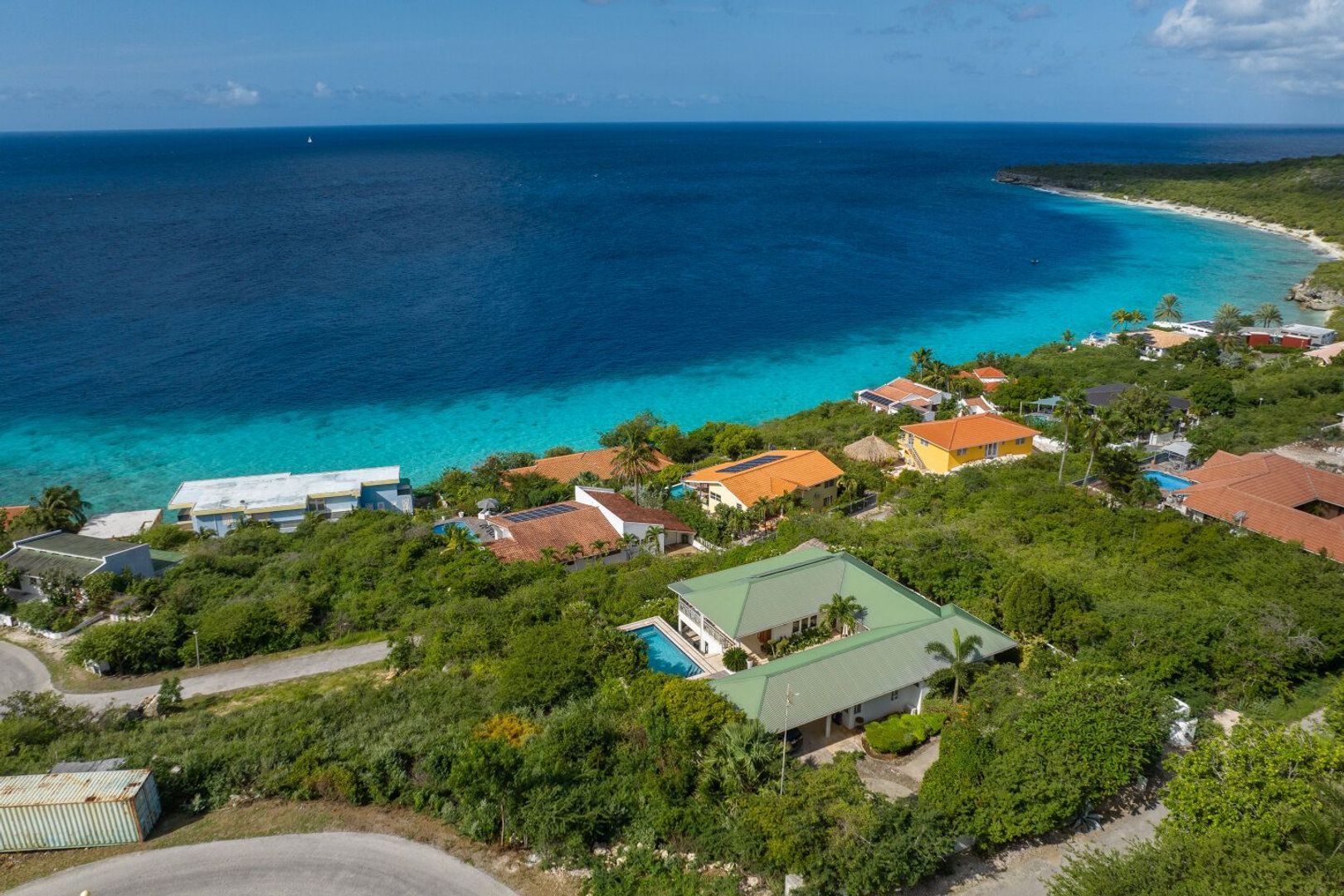 Deze privévilla met uitzicht op de oceaan is liefde op het eerste gezicht. Genesteld in Cas Abou, een beveiligde gated community aan de westkant van Curaçao, vindt u deze villa gelegen in een idyllische omgeving. Een korte wandeling van 700 meter brengt u naar een afgelegen privéstrandje, terwijl het beroemde Cas Abou-strand, geprezen als een van de mooiste stranden ter wereld, op slechts 5 minuten rijden ligt, waardoor de turquoise zee praktisch voor uw deur ligt. Deze betoverende villa heeft twee woonlagen met een warme en uitnodigende sfeer en combineert een fantastisch uitzicht op zee met een weelderig groen landschap. Bij binnenkomst wordt u getroffen door een prachtige tuin en ruime oprit, die de villa afzonderen en een uniek gevoel van privacy en rust geven. De tropische tuin, schitterend met volwassen begroeiing, biedt meerdere terrassen, ligstoelen rond het zwembad boven en een handige barbecueplek boven of onder de palapa beneden. Dompel jezelf onder in luxe terwijl je ontspant bij het zoutwaterzwembad en geniet van het adembenemende 180 graden uitzicht op de Caribische Zee en de betoverende zonsondergangen. De palapa beneden - een heerlijke schaduwrijke plek op warme middagen - nodigt uit om na een ontspannen dag op het nabijgelegen strand te ontspannen met een verfrissende sundowner, genietend van een koel briesje en wederom een fantastisch uitzicht. Het doordachte U-vormige ontwerp van de villa beschikt op de bovenverdieping over een moderne open keuken, met een kookeiland met granito blad en volledig uitgerust met o.a. Smeg apparatuur, geschikt voor een chef-kok en een uitnodiging om thuis te koken. Op dit niveau vindt u een grote woonkamer met schuin dak, die veel lichtinval biedt door de shutterdeuren en glazen ramen eromheen, die toegang geven tot alle terrassen in voor- en achterom. Er zijn 2 slaapkamers met twee badkamers en een volledig overdekt, rondom ruim privéterras met barbecueplek. Een gang leidt u naar het eetgedeelte en het bed en de badkamers en een inpandige trap leidt u naar de benedenverdieping. Op de benedenverdieping nodigt nog een volledig uitgeruste open keuken met ontbijtbar en twee wijnkoelers u uit om te entertainen en te genieten. Er zijn 2 slaapkamers, elk met een eigen badkamer op dit niveau. Buiten is er een overdekt terras en de palapa voor uw ontspanning en gemak. Ze bieden allemaal uitzicht op zee. Elk van de vier slaapkamers is modern, compleet met een eigen gloednieuwe badkamer, die comfort en privacy garandeert. Alle slaapkamers zijn voorzien van airconditioning. De geluiden van de prachtige tropische vogels komen je tegemoet zodra je 's ochtends de deuren opent. Een huis waar je rust voelt zodra je de oprit oprijdt. De carport biedt ruimte voor twee auto’s, maar op de oprit kunnen meerdere auto’s geparkeerd worden. Duik in de wonderen van snorkelen en duiken in deze pittoreske hoek van het eiland, met speciale waterbassins beschikbaar bij de villa om uw uitrusting af te spoelen. De kavel loopt door tot de beneden gelegen weg. Door het gehele huis ligt een granito vloer. Er is een camera en sensor systeem voor de beveiliging. Een Ipad systeem en speakers reguleren de muziek in de villa. Zonnepanelen voorzien de villa van electravgedurende de dag. De luchthaven Hato ligt op 20 minuten rijden. Willemstad ligt op 30 minuten rijden. Supermarkten liggen op 10 minuten rijden. Let op: De vraagprijs van deze villa bedraagt € 1.179.000,-