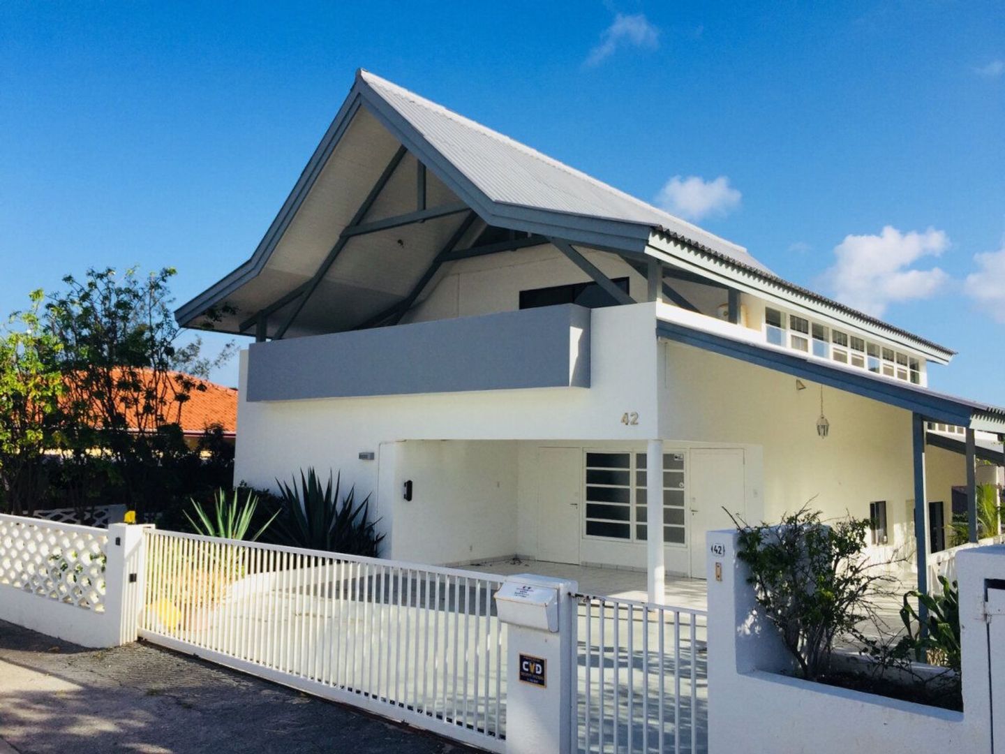 TE KOOP: Scandinavische Villa met Zwembad in Cas Grandi, Curacao Ontdek deze prachtige Scandinavische villa met een schitterend zwembad in de gewilde straat van Cas Grandi, Curacao. Deze charmante woning biedt een gunstige locatie, dicht bij populaire stranden, het Spaanse Water, supermarkten en het stadscentrum. Dankzij de hogere ligging geniet deze woning van een panoramisch uitzicht over de groene vallei en zelfs een glimp van de zee vanaf het gezellige terras. Deze frisse en eigentijdse woning is gelegen op een compact perceel, met een heerlijk zwembad en een ruime oprit. De woning is uitermate geschikt voor dubbele bewoning, een kantoor/praktijk aan huis, of zelfs gedeeltelijke verhuurmogelijkheden. Bij binnenkomst op de begane grond treft u een ruime woonkamer met uitzicht op het zwembad en in de verte de zee. De open keuken is voorzien van een kookeiland, een vaatwasser en vier gaspitten. Via een kleine trap bereikt u de drie ruime slaapkamers. De hoofdslaapkamer heeft een eigen badkamer, terwijl de tweede en derde slaapkamers een gerenoveerde moderne badkamer delen. Onder de trap bevindt zich een ruime berging. De trap naar de bovenverdieping is bereikbaar via de hal op de begane grond en/of via een eigen buitendeur. Op de bovenverdieping vindt u een zee aan leefruimte met een L-vormige keuken. Dankzij het hoge dak heeft deze verdieping een volwaardig appartementgevoel. De twee ruime slaapkamers delen een badkamer, en de woonkamer beschikt over een licht verhoogde vide met een eigen terras. Aan de voorzijde is tevens een groot terras waar u kunt genieten van een prachtig uitzicht. Onder de woning bevindt zich een ruime berging, geschikt voor het opbergen van surfplanken, barbecues, en meer. De omliggende tuin is beplant met lokale planten en vereist minimaal onderhoud. Of u nu op zoek bent naar een pand om te verhuren, een woning waar u aan huis kunt werken, of een veelzijdige villa voor dubbele bewoning, neem gerust contact met ons op voor een bezichtiging. Wilt u als eerste ons nieuwste aanbod zien? Volg ons op Facebook, like onze pagina en blijf op de hoogte!