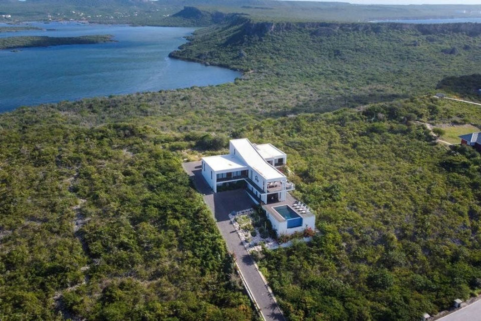 Deze geweldige villa op Coral Estate is gebouwd onder architectuur, het is een minimalistisch modern Europees ontwerp. Dit huis heeft prachtig uitzicht op de zee, het omliggende landschap en het huis zelf. Hoogwaardige, duurzame materialen zijn gebruikt voor constructie en afwerking. Hardhouten sluiterdeuren en glas, prachtige marmeren betonnen vloeren, zware scharnieren en sloten, gebruik van eclectisch keramiek en badkamers, een designkeuken, hardhouten terrassen rondom het huis. De villa voelt niet te klein en niet te groot; het voelt echt als een 'thuis'. Op 'begane grond niveau', naast het zwarte overloopzwembad, heeft de villa een gastenverblijf met een eigen badkamer. Er is een apart toilet en een buitendouche. Het zwarte zwembad heeft een infinity uiteinde. Er is ook een fantastische keuken beneden die ideaal is voor feesten en entertainment. Aan beide kanten onder het zwembad is voldoende opbergruimte. Op niveau 1 treft u een zeer ruime, Italiaanse designkeuken met ontbijtbar aan. De keuken is een belangrijke verbindingsfactor in het huis en vormt een verbinding tussen de mezzanine, het terras naar de kamers en beide zithoeken. Vanuit de keuken heb je een volledig zicht op de zee door de zijramen. De tv-ruimte verbindt het voorste en het achterste deel van het huis. Op dit niveau bevindt zich ook de masterbedroom met een ruime eigen badkamer met een inloopkast, twee kleinere slaapkamers met 2 badkamers, een apart gastentoilet en een pantry en een grote bijkeuken. Alle slaapkamers op dit niveau, evenals de woonkamer zijn verbonden via het terras dat rond het hele eerste niveau aan de voorkant van het huis loopt. Wanneer de deuren worden geopend, zijn alle terrassen met elkaar verbonden. Beheer van het zonlicht gedurende de hele dag speelt een uiterst belangrijke rol in de algehele sfeer en temperatuur van het huis. Alle glazen deuren bevinden zich aan de zijkant van het huis waar u ochtendzon heeft. Zonlicht komt niet direct het huis binnen; hierdoor heeft het huis prachtig natuurlijk licht maar geen warmte van de zon. In de middag wordt het zonlicht tegengehouden door het zwembad en het terras boven. U heeft 360 uitzicht op het binnenmeer van Jan Kok met de vele flamingo's en ook op de zee aan de voorkant, the best of both worlds. Veel aandacht is besteed aan het windmanagement in het huis. Door het wel of niet openzetten van de houten shutters reguleert u het binnenklimaat. Het huis is daarom nooit heet van binnen; zelfs in de warmste weken is er altijd een klein beetje wind die een natuurlijke koelte geeft. Het huis heeft een uitstekend alarmsysteem, zowel met camera's als deuren en ramen protectie. Er is voldoende parkeergelegenheid zowel voor als achter het huis.