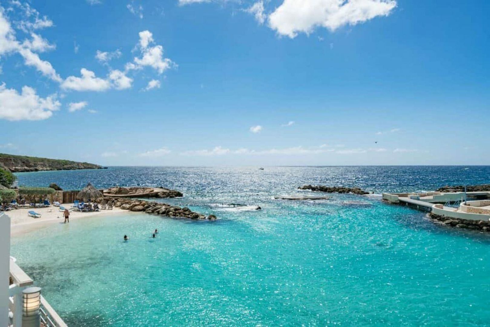 TE KOOP Curacao Ocean Resort Appartement met prive strand en zeezicht Op het populaire Curacao Ocean Resort hebben we dit 2 slaapkamer appartement te koop. Het appartement is gelegen in gebouw 7 direct bij de ingang. Het enige gebouw op het resort waar een Otis lift in zit. Als u de lift neemt en op de tweede verdieping uitstapt staat u bijna direct voor de deur van uw appartement Bij binnenkomst wordt u als vanzelf naar de porch getrokken; vanaf hier heeft u geweldig uitzicht over de lagoon van Ocean resort met de dolfijnen van het Therapy Center. Aan het einde van de lagoon ligt het parelwitte zandstrand van Curacao Ocean Resort waarvan u mede eigenaar bent. U heeft vanaf hier ook zicht op het grote zwembad met kindergedeelte. Door de ligging van het gebouw heeft u wel de verkoelende wind op de porch en niet de warme middagzon die aan de achterkant ondergaat. Binnen treft u een zeer ruime keuken aan met een granieten blad met ontbijt bar, afwasmachine, oven en kookplaat, allen van het merk Boretti. En natuurlijk een grote Amerikaanse koelkast. Alle laden van de keuken hebben het silent close systeem en zijn gebouwd met voor de tropen geschikt materiaal. Achter de keuken bevindt zich de pantry waar ruimte is voor opslag en de wasmachine en droger staat. Via de woonkamer die door een grote schuifpui verbonden is met de porch heeft u toegang tot de master suite; een slaapkamer, met zeezicht, een walk-in closet en een ruime badkamer met douche, wc en ligbad. De tweede slaapkamer bevindt zich aan de andere kant en is ook voorzien van een eigen badkamer en inbouwkasten. Het appartement is door de huidige eigenaar succesvol in de korte termijn verhuur. Maar ook permanente bewoning of lange termijn verhuur is toegestaan. Het Curacao Ocean Resort is op loopafstand van het grote strand van Seaquarium Beach, diverse restaurants en beachclubs zoals Cabana, Mood Beach, Hemmingway en Madero Ocean Club. Ook de gym, spa en het Seaquarium zijn allemaal te voet te bereiken, net als de duikschool en de winkels op de boulevard waaronder Starbucks. Aangezien het gebouw bovenwinds staat heeft u hier echt de best- of both worlds, rust op uw eigen plek en vertier als u er aan toe bent. De officiële vraagprijs van dit appartement op Curacao Ocean Resort is in Euro en bedraagt Euro 699.000 k.k inclusief meubilair. Wilt u als eerst ons nieuwste aanbod zien? Volg ons op Facebook, like onze pagina en volg ons!