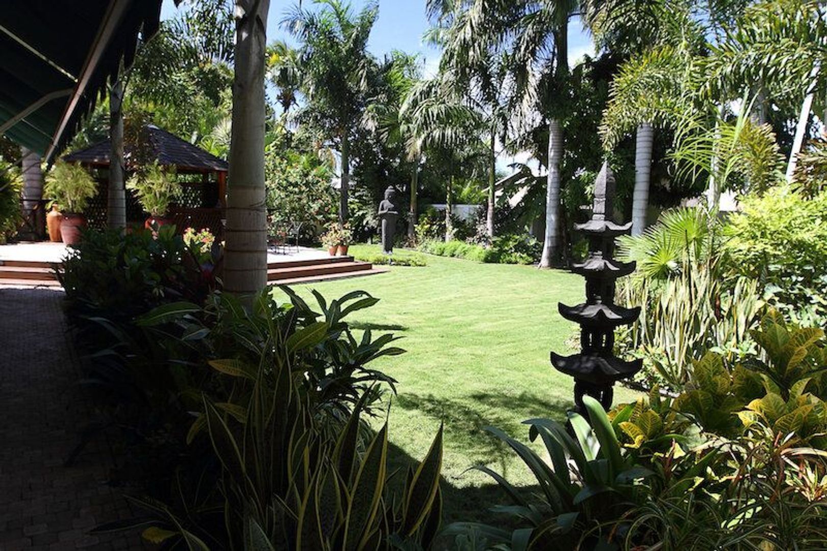 Elegante familievilla met weelderige tropische tuin en jacuzzi. Rondom de villa heeft u een mooi uitzicht op de tuin, waar Aziatische kunstelementen perfect worden gecombineerd met de Caribische stijl van deze complete villa. Natuurlijke materialen van hoge kwaliteit worden overal gebruikt; limestone vloeren, hardhouten deuren en ramen, aantrekkelijke houten lambrisering in verschillende kamers en een goed doordacht lichtplan creëren een comfortabele sfeer. Hardhouten schuifdeuren verbinden deze elegante leefruimte met het terras dat goed gelegen is op de wind en daardoor een mooie uitbreiding is van de woonkamer. De keuken met houten lambrisering is stijlvol gecombineerd met een zwart granieten aanrechtblad en beschikt over alle benodigde inbouwapparatuur en een koelkast met een dubbele deur en een ontbijtbar. Aangrenzend is de eetkamer, bijkeuken en woonkamer. Aan de ene kant van het huis vind je de slaapkamers en badkamers, de studeerkamer en de fitnessruimte. Alle 4 slaapkamers zijn ruim met aangrenzende elegante badkamers, inbouwkasten en airconditioning. Een van de slaapkamers is nu in gebruik als een studie met houten kasten. Er is een garage aan de voorkant van het huis, die je binnenkomt via de op afstand bedienbare poort. De weelderige tropische tuin is prachtig aangelegd met een Aziatisch tintje en aantrekkelijke waterelementen. Er zijn verschillende comfortabele zithoeken voor u en uw gasten om te genieten van de tuin en het briesje. Het wordt geïrrigeerd met grondwater. De deepwell-pomp is verbonden met een computergestuurd systeem dat ervoor zorgt dat de planten regelmatig water krijgen. De tuin heeft prachtige volwassen palmen, fruitbomen en tropische planten.De jacuzzi staat in een grote gazebo. Naast de villa is er een compleet uitgerust gastenverblijf met een slaapkamer en een woonkamer. Het gastenverblijf heeft een eigen volledig aparte ingang die de privacy van het hoofdgebouw garandeert. De villa is zeer goed beveiligd door het geavanceerde alarmsysteem. Damacor is een van de meest centraal gelegen woonwijken van Curaçao en is ook een van de groenste woonwijken van Curaçao. U vindt supermarkten, scholen en sportclubs in de buurt. Het financiële hart van Curaçao, Schottegatweg Oost-gebied ligt net om de hoek. Grondoppervlakte 1610 m² (eigen grond) Gebouwd oppervlak van 535 m²