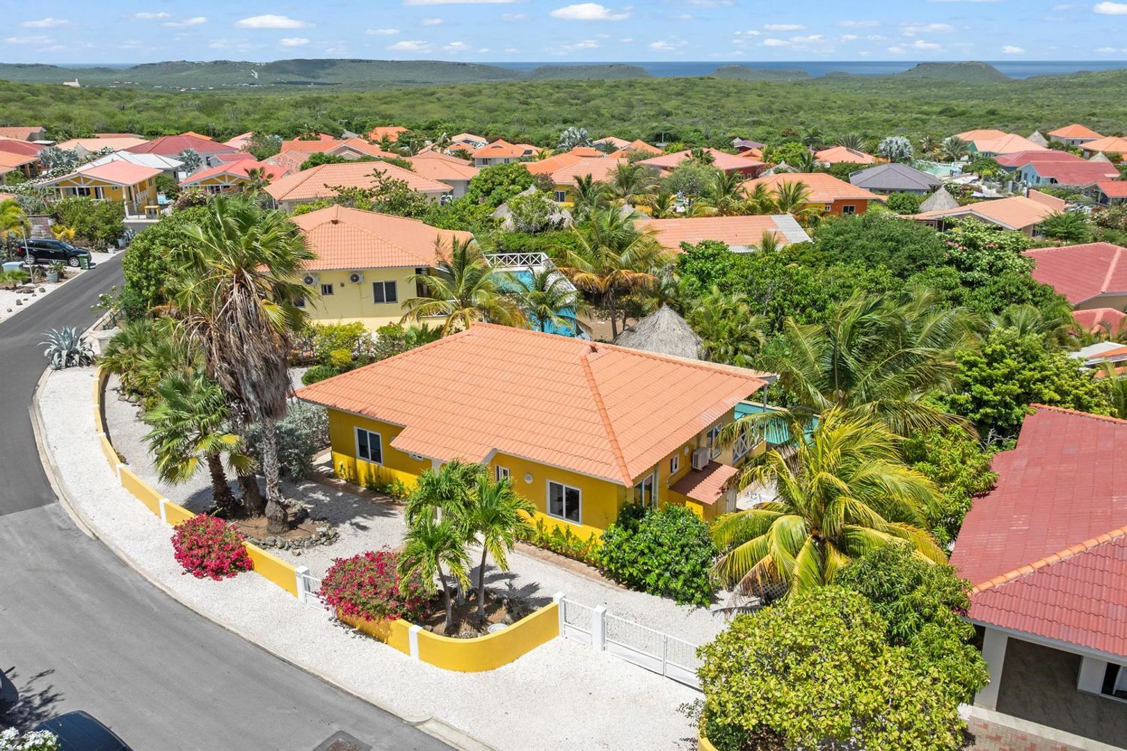 Prachtige en goed onderhouden villa met privé zwembad te koop op Villapark Fontein De villa staat op een ruim perceel eigen grond van 699 m2 met een mooi vrij uitzicht. Het is gelegen op een rustig gedeelte van Villapark Fontein waar niet meer gebouwd wordt. Deze prachtige villa met tropische tuin verkeert in uitstekende staat van onderhoud en is instap klaar. De villa is geschikt voor permanente bewoning of als investering met verhuurmogelijkheden voor zowel lange als toeristische verhuur. De villa biedt een combinatie van luxe en comfort. De villa is compleet ingericht en van alle gemakken voorzien. De villa wordt momenteel aangeboden voor de toeristische verhuur. De huidige verhuurkalender kan eventueel overgenomen worden. De villa De villa heeft een woonoppervlakte van 190 m2. Via de entree komt men via een hal (met gastentoilet) in de woonkamer. Aan de rechterzijde bevinden zicht twee slaapkamers en met een gedeelde badkamer. Aan de linkerzijde van de woonkamer bevindt zich de halfopen L-vormige keuken en een inpandige berging met wasmachine aansluiting. Eveneens aan de linkerzijde is de master slaapkamer gelegen met een en-suite badkamer. De masterslaapkamer is tevens voorzien van openslaande deuren naar de tuin. Alle slaapkamers zijn voorzien elk 2 box spring bedden. Vanuit de woonkamer komt met op de ruime overdekte porch en via een trap komt men op het ruime terras met het ruime zwembad van 7 x 4m dat wordt omringd door een stijlvol betegeld pooldeck. De tuin rondom de villa is voorzien van tropische bomen en planten met een ideale balans tussen natuurlijke schoonheid en functionaliteit. Er is een palapa aanwezig, waar men lekker kan genieten in de schaduw. Indeling en kenmerken De woning is volledig voorzien van aluminium deuren en ramen en beschikt over: - Een ruime woonkamer en ruime halfopen keuken. - Drie comfortabele slaapkamers met airco’s. - Twee badkamers, waarvan één en-suite. - Separaat gastentoilet. - Een inpandige berging/opslagruimte met wasmachine aansluiting. - Een ruime overdekte porch. - Een mooie tropische tuin met een palapa. - Een ruim terras met privé zwembad (7 x 4 m). Waarom kiezen voor deze villa? - Uitstekend verhuurpotentieel en bewezen rendement. - Mooie tropische tuin met royaal privézwembad. - Unieke locatie nabij populaire stranden en voorzieningen. De vraagprijs voor de prachtige en goed onderhouden villa bedraagt EUR 495.000, - k.k. Locatie en omgeving Villapark Fontein staat bekend om zijn rustige en veilige omgeving, ideaal voor ontspanning. Het park beschikt over 24/7 beveiliging, wat extra gemoedsrust biedt voor bewoners en gasten. Villapark Fontein is vernoemd naar het oude Plantage huis dat hier heeft gestaan. Het ligt vlakbij het schitterende gerenoveerde landhuis Ascension dat een waar museum is en het pittoreske dorpje St Willibrordus met zijn prachtige flamingo reservaat. Maar ook het ecologisch buur-landgoed van Porto Marie is de moeite waard om te bezoeken. Villapark Fontein Curaçao ligt ook vlakbij het grootste natuurreservaat “Christoffel Park Curaçao” en heel dichtbij een van de mooiste stranden van het Caribisch gebied, op het aangrenzende landgoed Cas Abou. Niet ver weg zijn er ook de schitterende stranden Porto Marie en het openbare strand van Daaibooi. Natuur, ecologie en duurzaamheid staan hoog in het vaandel van het villapark. De hele omgeving straalt veel rust uit.