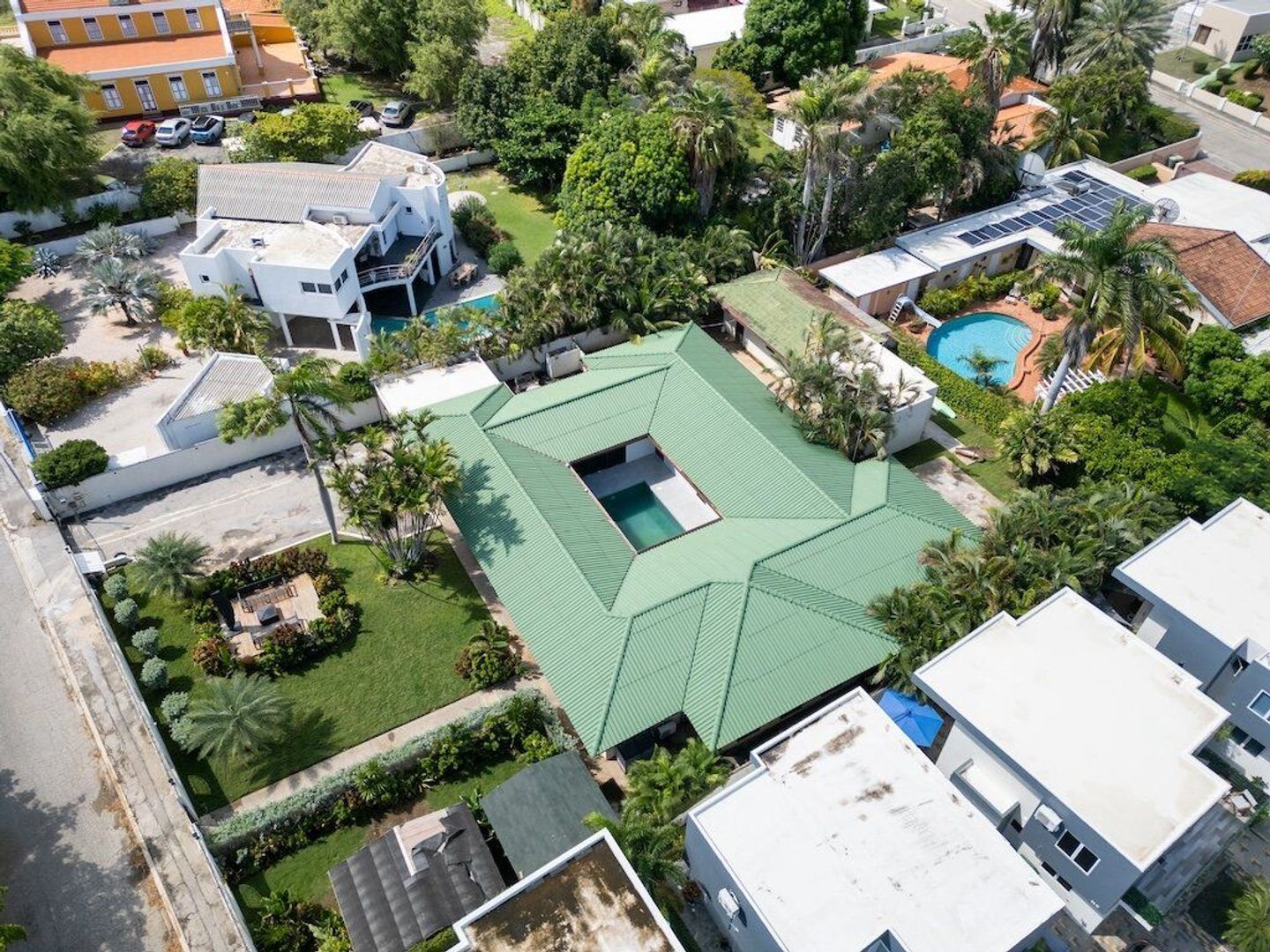Centraal gelegen tropische familie woning met zwembad en veelzijdige indelingsopties. Bent u op zoek naar een bijzondere woning die ruimte, privacy en veelzijdigheid combineert? Deze vrijstaande woning biedt niet alleen een ruime hoofdwoning, maar ook een gerenoveerd vrijstaand appartement en twee studio’s, ideaal voor verhuur of werk aan huis. Bij binnenkomst in de vierkante hoofdwoning leidt een brede hal u langs het kantoor en verder naar de ruime zit- / tv-kamer. De woning is bijzonder omdat het gebouwd is in een vierkant rondom het zwembad, zodat alle kamers hier direct op uitkijken. Dit zorgt voor een unieke sfeer, biedt volop privacy en biedt de mogelijkheid een inpandige tropische oase te creëren. Achter de zitkamer bevindt zich een separaat toilet. De woonkamer met open keuken ligt aan de voorzijde van de woning en kijkt uit op zowel het zwembad als de grote tropische tuin aan de voorzijde. De moderne open keuken aan de biedt uitzicht op zowel het zwembad als de voortuin. De keuken is voorzien van alle gemakken. Uitgerust met een 5-pits fornuis, oven, magnetron en losstaande Amerikaanse koelkast, biedt de keuken veel kastruimte, royale werkbladen en een gezellig keukeneiland met bar. Via de hal bereikt u de drie slaapkamers en de ruime, veelzijdige kamer die u naar eigen wens kunt inrichten als eetkamer, speelkamer, muziekkamer of bibliotheek. De hoofdslaapkamer is zeer royaal, heeft een ensuite badkamer in marmer, compleet met douche en ligbad, en ruimte voor een zitje. Alle slaapkamers zijn voorzien van airconditioning. De twee andere ruime slaapkamers delen een moderne, recent gerenoveerde badkamer. Aan de achterzijde van de woning bevindt zich het van binnen gerenoveerde appartement, bereikbaar via de carport en een looppad langs de zijkant van de woning. Het appartement beschikt over een eigen woonkamer, slaapkamer en badkamer, en is ideaal als gastenverblijf of zelfstandige woonruimte. Aan de voorzijde bevinden zich twee houten studio's, ieder toegankelijk via een separate ingang. Deze ruimtes bieden tal van mogelijkheden voor verhuur of voor gebruik als kantoor of praktijkruimte. De houten studio’s en het vrijstaande appartement bieden volop mogelijkheden voor verhuur of gebruik als zelfstandige ruimtes. Dit maakt de woning geschikt voor gezinnen, professionals met een eigen praktijk aan huis of mensen die behoefte hebben aan een extra gastenverblijf. Deze villa biedt diverse bijzondere facetten, zoals het centraal gelegen zwembad, de massieve houten vloer door de gehele hoofdwoning waardoor de woning een warme uitstraling heeft, en de ruime terrassen aan de voor- en achterzijde. De marmeren badkamer van de hoofdslaapkamer, de moderne keuken, en de royale ruimtes in de woning maken het woongenot compleet. De woning is ontworpen voor optimaal comfort in het warme klimaat van Curaçao, met natuurlijke ventilatie en schaduwrijke plekken om de warmte buiten te houden. De tuin wordt op duurzame wijze onderhouden met een eigen waterput en dripsysteem, wat zorgt voor groene en gezonde beplanting het hele jaar door. Parkeergelegenheid is ruim aanwezig bij de woning, inclusief een carport. Er zijn ook voldoende opbergmogelijkheden. Scalaweg 11 ligt in een rustige en groene omgeving met voorzieningen zoals winkels, scholen en openbaar vervoer op korte afstand. De woning biedt zowel privacy als gemakkelijke toegang tot het levendige hart van Curaçao. Belangrijkste kenmerken: Vrijstaande tropenwoning met een vierkante bouwstijl, gericht op een inpandig zwembad Hoofdwoning met 3 slaapkamers, waaronder een royale hoofdslaapkamer met ensuite badkamer Woonkamer met open keuken aan de voorzijde, met uitzicht op het inpandige zwembad en de tropische tuin Flexibele ruimte voor bijvoorbeeld eetkamer, speelkamer, muziekkamer of bibliotheek Ruime zit-/ tv-kamer met aangrenzend separaat toilet en een kantoor Royale open keuken met hoogwaardige apparatuur en keukeneiland Vrijstaand gerenoveerd appartement met eigen toegang, ideaal als gastenverblijf Twee houten studio’s aan de voorzijde met eigen ingang, perfect voor praktijkruimte of andere verhuurdoeleinden Tropische tuin met volwassen beplanting, een ruim lounge terras met houten deck en automatische bewatering via waterput en dripsysteem Massieve houten vloer in de gehele hoofdwoning voor een warme, tropische uitstraling Achterterras grenzend aan zowel de hoofdwoning als het appartement, ideaal om te loungen en barbecuen Wilt u zelf de charme en mogelijkheden van deze villa ervaren? Neem contact op voor een bezichtiging met Jacqueline Remmelts via +5999 5123803 en beleef deze unieke woning.