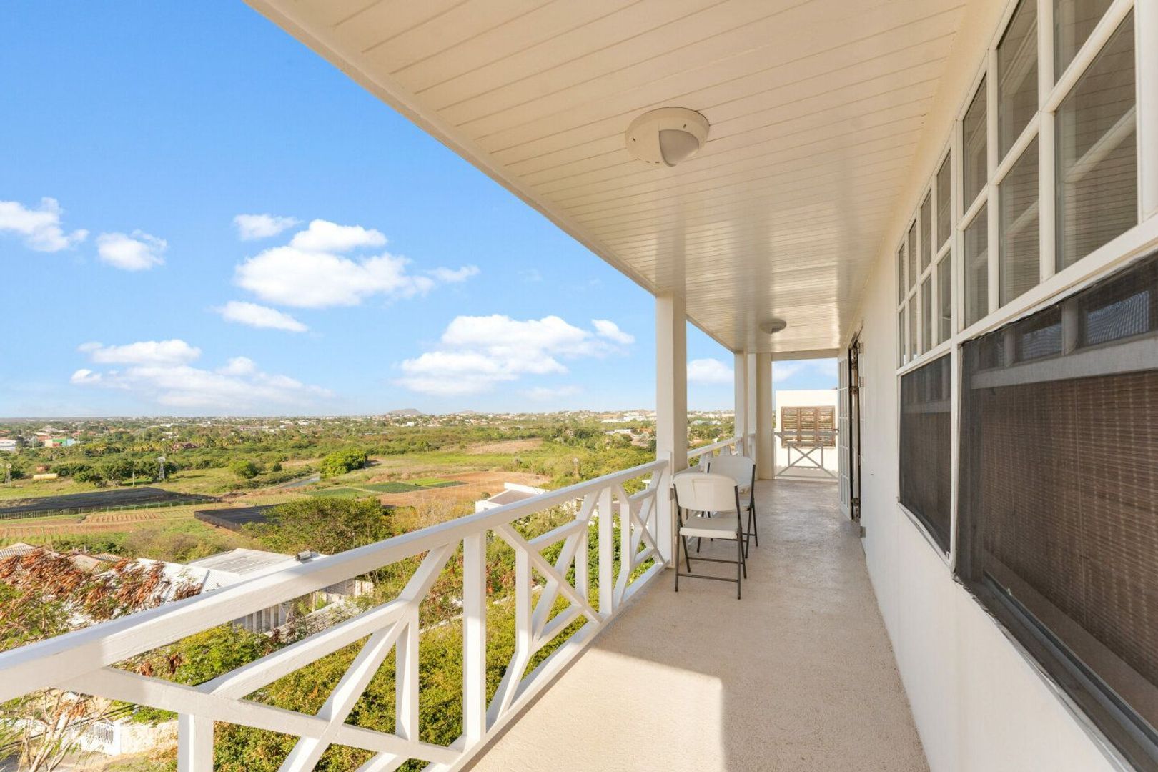 Deze goed onderhouden en in 1980 solide gebouwde drielaagse woning biedt een ongeëvenaarde woonervaring met een schitterend 180 graden uitzicht dat de essentie van de omgeving en het weelderige groene hart van Girouette vastlegt. Met een royaal woonoppervlak van 270 m² en een perceel van 700 m² erfpachtgrond biedt deze woning de perfecte basis voor diverse mogelijkheden; een ruime gezinswoning, een luxe bed & breakfast, sfeervolle vakantiewoning of comfortabele studentenwoning. Het perceel van de woning in Girouette betreft erfpachtgrond, welke naadloos zal worden overgedragen aan de nieuwe eigenaar. Op de eerste verdieping van deze residentie bevindt zich een gezellig appartement met één slaapkamer en een badkamer, dat een privé en comfortabele ruimte biedt voor gasten of uitgebreide familie. Het gemak van een prepaid systeem voor elektra en water zorgt voor een zorgeloze woonervaring en aparte meters voor de verschillende verdiepingen. Stap naar buiten op de uitnodigende zijveranda, waar u kunt genieten van de vergezichten van de omliggende woonwijk van de wijk Girouette en daarbuiten. Het is de perfecte plek om te ontspannen, te entertainen of gewoon te genieten van het schilderachtige uitzicht. De tweede verdieping vormt het waar het hart van het huis. Een ruime woonkamer zorgt voor een gastvrije sfeer, perfect voor zowel ontspanning als vermaak. Twee goed ingerichte slaapkamers bieden comfort en privacy, terwijl een charmante keuken tegemoet komt aan uw culinaire wensen. Een badkamer en een balkon completeren dit niveau, en directe toegang tot de tuin nodigt uit tot buiten, waar een charmante palapa op u wacht, waardoor een ideale setting ontstaat om buiten te dineren of te genieten van het heerlijke buitenleven. De derde verdieping is een echt hoogtepunt en biedt extra woonruimte en een prachtig panoramisch uitzicht, zowel overdag als 's avonds, wanneer de omringende lichten een romantische sfeer creëren. Twee slaapkamers, waaronder een indrukwekkende hoofdslaapkamer, bieden ruime accommodatie. De hoofdslaapkamer biedt een geweldig uitzicht. Een tweede woonkamer, nog een keuken en een balkon dat vrijwel rondom loopt, vergroten de flexibiliteit van deze verdieping, waardoor je de ruimte kunt afstemmen op jouw wensen. Of u deze verdieping nu gebruikt als extra slaapkamers of als aparte woonruimte, het is een veelzijdige en uitnodigende ruimte waar veel mogelijkheden voor zijn. Er is een speciale wasruimte, zodat de dagelijkse klusjes gemakkelijk kunnen worden afgehandeld. Het pand beschikt ook over parkeergelegenheid voor drie auto's. De woning beschikt over zonnepanelen voor de elektra voorziening overdag, airconditioning voor de slaapkamers en gedeelde 220V en 110V elektra punten. In de tuin is voldoende ruimte om een zwembad aan te leggen. Girouette is een zeer centraal gelegen, gewilde wijk die bekend staat om zijn veiligheid, rust en gezinsvriendelijke sfeer. Hier wonen betekent genieten van de gemoedsrust die gepaard gaat met het wonen in een gemeenschap die veiligheid en sereniteit waardeert. Bovendien maakt de nabijheid van verschillende voorzieningen, scholen en de prachtige stranden van Curaçao het een ideale locatie voor zowel gezinnen als individuen. Welkom thuis! Heeft u interesse in dit interessante investeringsobject? Neemt u dan contact op met makelaar Jacqueline Remmelts voor meer informatie en een bezichtigingsafspraak via +5999 512 3803.