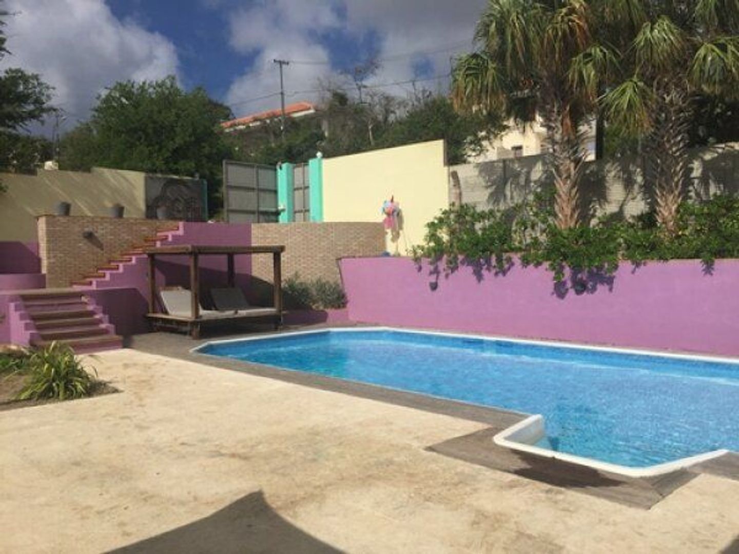 Deze heerlijke familie woning ligt zeer centraal in de wijk Girouette. De kleurrijke woning ligt aan een eigen woning en is gebouwd op een ruim perceel van 1040m2. Aan de achterkant grenst het aan het landgoed van Landhuis Girouette en door deze ligging heeft het huis bijzonder veel privacy. Bij binnenkomst in de woning ziet u direct dat het woongedeelte opgedeeld is in twee delen. Een deel om lekker te lezen, werken en eten en een deel om te ontspannen en TV te kijken. Het gehele woongedeelte heeft Jatoba hardhouten vloerdelen voor een huiselijke en gezellige sfeer. De houten shutters van de woonkamer zorgen voor gefilterd licht en voor het doorlaten van wind. Al het hout is geolied en het onderhoud is daarom minimaal. Achter de eetkamer bevindt zich de ingang naar de keuken. Deze heerlijke keuken bestaat uit een voor en een achter keuken en een buiten gedeelte. Dit is de plek om heerlijk samen te koken, de bbq voor te bereiden of cocktails klaar te maken. Bij de buitenkeuken is ruimte voor een eettafel, deze wordt door een scahduwdoek beschermt tegen de zon. Achter de buitenkeuken bevindt zich een kruidentuin. Aan de andere kant van de woonkamer vindt u de ingang naar de slaapkamers. De masterbedroom heeft een eigen badkamer en een ruime walk in closet. De andere slaapkamers bevinden zich in de aanbouw die pas in 2013 gerealiseerd is. Twee ruime slaapkamers met hoge plafonds en een eigen moderne badkamer. Uiteraard zijn alle slaapkamers voorzien van airco's. Ook hier zijn weer de hardhouten shutters geplaatst en de vloer is een moderne gietvloer. De vierde slaapkamer is gelegen in de kelder, welke ook een eigen ingang vanaf buiten heeft. De ideale ruimte dus voor een gastenverblijf of voor een aupair, nanny of Live-in. In de tuin vindt u het ruime zwembad van 5 x 10 meter met gezellige zitjes erom heen. Er is een carport voor 1 auto en genoeg ruimte om een tweede en derde auto op de oprit te parkeren. De tuin wordt bewaterd met water uit een deepwell.