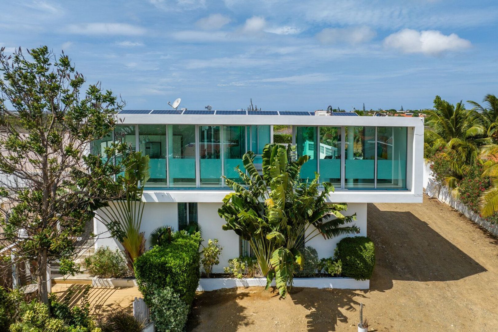In het hart van de prestigieuze en centraal gelegen Girouette-gemeenschap, een hele populaire woonwijk in Curaçao, staat een indrukwekkende villa die de essentie van het luxe leven weergeeft. Dit architecturale pareltje, gebouwd in 2013, is een belichaming van verfijning en elegantie. Als u de villa nadert, ziet u een moderne gevel die glas en beton naadloos combineert en bij elke bocht weelde uitstraalt. De villa is op ingenieuze wijze verdeeld in twee verschillende niveaus, die elk een uniek perspectief bieden op Caribisch leven. Een moderne en strakke trap leidt u naar: het penthouse. Hier omhult een U-vormige structuur een privéoase met een zwembad, perfect voor ontspanning en entertainment. De woonkamer van het penthouse, met zijn torenhoge glazen wanden en schuifdeuren, creëert een naadloze mix van binnen- en buitenruimtes. De patio, compleet met een prachtig zwembad en een zitgedeelte buiten, nodigt u uit om te genieten van het warme zonlicht en de zachte bries. De kamerhoge glazen ramen wissen de grens tussen binnen en buiten, waardoor natuurlijk licht elke hoek van de open woonkamer en de volledig uitgeruste keuken kan verlichten, met glimmende granieten werkbladen en kamerbrede kasten. Het uitzicht vanuit de woonkamer is ronduit adembenemend. De kingsize hoofdslaapkamer beschikt over een ruime inloopkast en een aangrenzende badkamer die verwennerij een nieuwe definitie geeft. Met niet één, maar twee regendouches en een luxe badkuip is het een toevluchtsoord voor ontspanning. Twee elegant ingerichte slaapkamers delen nog een luxueuze badkamer. Net als de rest van de villa zijn deze slaapkamers voorzien van glazen schuifdeuren van plafond tot vloer en ramen met uitzicht op het zwembad. Op de begane grond vindt u een ruim, zelfstandig appartement. De ruime woonkamer, gecombineerd met een open keuken, creëert een ideale ruimte voor ontspanning en vermaak. Er wacht een ruime slaapkamer, compleet met een schuifdeur voor meer privacy. De aangrenzende badkamer is royaal bemeten en biedt een vleugje luxe. Daarnaast is er een kleinere slaapkamer die een aanvulling vormt op de woonruimtes. Stap naar buiten naar een heerlijk zitgedeelte buiten, versierd met een charmant tuinhuisje, waar u in comfort en privacy kunt genieten van de volwassen planten om u heen. Het uitgestrekte perceel van 1400 m2 biedt voldoende ruimte voor het creëren van een weelderige tuin, een garage, een oprit en zitjes onder de drie volwassen olijfbomen. Wij hebben u alvast een idee gegeven hoe het huis er uit kan zien met een aangelegde tuin. Het pand beschikt over een elektrisch bediende poort voor gemakkelijke toegang. Zonnepanelen voorzien de villa van elektriciteit en er is een ruime was- en berging, evenals een poolhouse, gelegen onder het penthouse op de begane grond van de villa. Deze residentie combineert naadloos moderne voorzieningen met een gedurfd ontwerp, waardoor een rustige sfeer ontstaat die op harmonieuze wijze eigentijds gemak combineert met natuurlijke pracht. International Fine Living is uw vertrouwde makelaar voor al uw droomwensen op Curacao. Ontdek vandaag nog uw droomhuis bij ons!