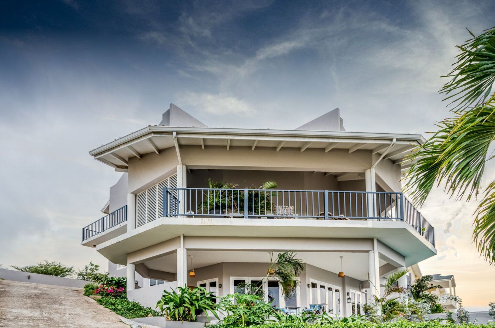 Op één van de hoogste percelen in het luxe omheinde villapark Jan Sofat In Willemstad Curaçao ligt deze imposante, sfeervolle, onder architectuur ontworpen villa. De villa heeft zes slaapkamers, vier badkamers en een woonoppervlakte van maar liefst 540 vierkante meter. Via de steile oprijlaan rijdt u langs de drie verdiepingen tellende villa en eindigt u uiteindelijk aan de voorzijde waar meteen extra parkeergelegenheid voor meerdere auto’s is. De entree met zuilen is uitnodigend en eenmaal binnen houdt u die uitnodigende sfeer vast. Enerzijds vanwege het vele licht dat via de raampartijen en openslaande deuren binnenvalt, anderzijds vanwege de stijlvolle bogen. Hiermee worden de verschillende ruimtes op een speelse wijze van elkaar gescheiden, maar blijft het open karakter van de villa behouden. Als u de villa betreedt, bevindt zich in de hal aan de rechterzijde van de entree een badkamer met douche. Deze grenst aan de studeerkamer. Dit gegeven maakt dat de studeerkamer eventueel ook uitermate geschikt is als extra slaapkamer. In de hal bevindt zich ook de trap die leidt naar de derde verdieping of naar de lagergelegen verdieping. Woonkamer Door het hoge plafond oogt de woonkamer groots. Vanuit de woonkamer heeft u zicht op de overloop met balkon van de derde verdieping. Door de openslaande deuren en de vele ramen voelt u in de woonkamer constant de heerlijk koele wind. De woonkamer, keuken en de extra kamer op de verdieping hebben openslaande deuren die toegang geven tot het overdekte terras. Beneden, op de begane grond, komt u in een ruimte die geschikt is voor een appartement of gastenverblijf. Vanaf hier heeft u ook toegang tot het zwembad en het houten pooldeck waar u geniet van de verkoelende wind. Keuken Op de woonverdieping bevindt zich een prachtige moderne keuken met alle denkbare inbouwapparatuur (SMEG). Typerend zijn het kookeiland, de lichte houttinten van het meubilair en de zachte kleurtonen op de muur. Het materiaal en de kleuren contrasteren mooi met de moderne inbouwapparatuur en de werkbladen van neolith (een soort keramiek, red-). Vanwege de doorkijk naar de eetkamer heeft de keukenprins/-prinses tijdens het koken direct contact met zijn/haar gasten. Derde verdieping en gastenverblijf Via de trap bereikt u de derde verdieping waar u op het overloopbalkon uitkijkt op de woonkamer beneden. Op deze verdieping bevinden zich drie slaapkamers met stuk voor stuk een schilderachtig uitzicht over Jan Sofat, het Spaanse Water en de heuvels. De masterbedroom heeft een eigen badkamer en suite en de twee andere slaapkamers delen een badkamer. Beneden, op de begane grond, komt u in een ruimte die geschikt is voor een appartement of gastenverblijf. Jan Sofat Jan Sofat is een luxe omheind villapark, rustig gelegen aan het Spaanse Water. Het resort beschikt over een 24/7 beveiliging. Alle bewoners hebben toegang tot de gemeenschappelijke jachthaven en een speeltuin voor de kinderen. De meeste voorzieningen, zoals stranden, winkels en restaurants liggen op slechts enkele minuten afstand en het centrum van Willemstad ligt op 15 minuten rijden. Wilt u als eerst ons nieuwste aanbod zien? Volg ons op Facebook, like onze pagina en volg ons!