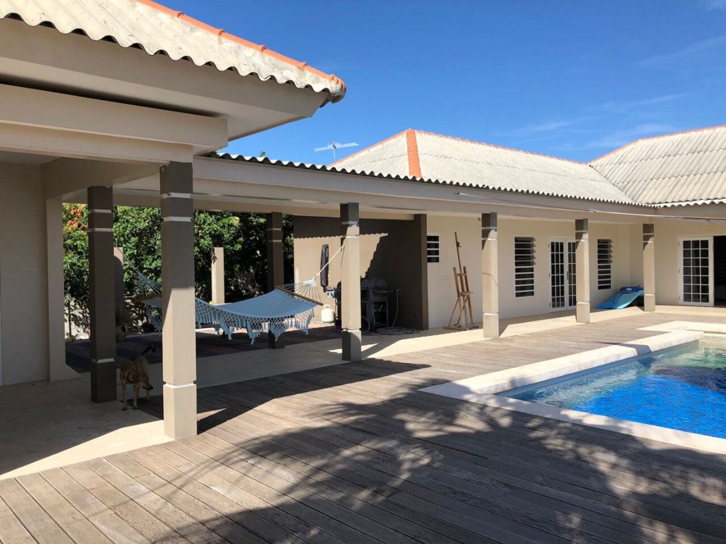 TE KOOP Villa met zwembad en appartement vlakbij Santa Barbara Beach Curacao TE KOOP Villa met zwembad en appartement vlakbij Santa Barbara Beach Curacao “Wat een leuk huis!” Deze opmerking wordt vaak gehoord in deze grote woning . Het staat te koop in de ruim opgezette, rustige en kindvriendelijke buurt Katoentuin op 1.520m2 eigendomsgrond. De wijk ligt op steenworp afstand van het prestigieuze Santa Barbara Beach & Golf resort, waar u een beroemde Golf Baan vindt, tennisbanen, a gym, shops, een jachthaven waar u uw boot kunt leggen en natuurlijk een prachtig wit zandstrand. Voorzien van een ruime woonkamer, 4 slaapkamers (waarvan nu één in gebruik als kantoor) en twee badkamers, biedt deze – onder architectuur gebouwde - woning alles wat een mens maar kan wensen. Maar er is nog veel meer. De grote voorporch, voorzien van te dimmen inbouwspots, geeft gelegenheid te genieten van de wind en het uitzicht op de voortuin van 15 meter, waardoor veel privacy wordt verkregen. In deze tropische voortuin treft u een elektrisch bediende poort en de tuin wordt bewaterd door een dripsysteem, aangesloten op de deepwell. Regelmatig wordt de tuin bezocht door kolibri’s, suikervogeltjes, trupiaals, leguanen en ’s avonds komen vleermuizen soms een kijkje nemen. Het terrein is onderhoudsvriendelijk aangelegd. Achter de kavel bevindt zich lokale natuur, die onbewoond blijft als onderdeel van de voormalige plantage Cathoentuin. Op de achterporch van behoorlijk formaat, treft u eveneens inbouwspots. De porch grenst aan het tweekamer appartement met douche, laundry en het zwembad van 40m2. Het zwembad met groot pooldeck is vanuit de woonkamer én de masterbedroom te bereiken door openslaande deuren. Alle shutterramen en deuren zijn afkomstig van Regimac. Vanuit de masterbedroom met walk-in closet en prachtige badkamer, is er uitzicht op het zwembad. Geweldig wakker worden, toch? Bovendien is het zwembad voorzien van led-verlichting. Zo worden veel elektriciteitskosten bespaard. Over elektriciteit gesproken: er is zowel 110V als 220 V in het huis aanwezig. De moderne keuken met koof bevat led verlichting en is voorzien van inbouwapparatuur en geeft alle gelegenheid om lekker te kokkerellen. Aan de rechterkant van het huis bevinden zich drie airco-units, waarvan één Inverter, die allen aan het oog worden onttrokken door een ombouw. Achter het huis vindt u een carport en een grote schuur. Er is ruimte voor veel auto’s op het terrein. Deze woning is perfect te verhuren aan toeristen als u er zelf niet bent, of alleen het appartement zodat u een gezellige B & B kan bestieren. Ook kan het een uitstekende woning voor expats zijn. Kortom: deze woning, op 15 autominuten afstand van het centrum van Willemstad, geeft u het buitenleven waar u naar verlangt, tevens is Jan Thiel met zijn stranden en Mambo Beach en Santa Barbara Beach in luttele minuten te bereiken, net als de Caracasbaai. Wie wil dat nou niet!? Wilt u als eerst ons nieuwste aanbod zien? Volg ons op Facebook, like onze pagina en volg ons!