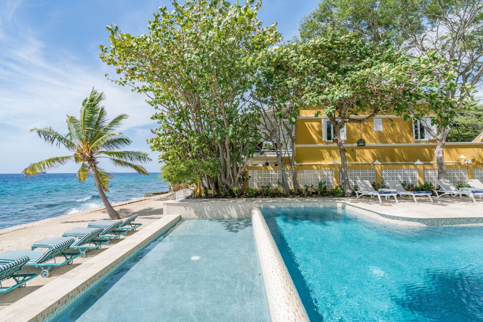 Dit werkelijk fantastisch gerestaureerde landhuis uit de 18e eeuw ligt direct aan zee. Verscholen achter prachtige oude mahonie bomen bevindt zich een landgoed dat zo veel privacy heeft dat het zelfs een beetje onbekend is op Curacao. Het hoofdgebouw beschikt over 3 ruime slaapkamers en drie grote badkamers, allen met whirlpool baden en een aparte douche . Op de tweede verdieping biedt het balkon een prachtig uitzicht op de zee met een aanhoudende parade van schepen die de beroemde haven van Curaçao in en uit varen. De grote keuken is voorzien van alle benodigde apparatuur en is zeer smaakvol gesitueerd in de orginele keuken waarin u dus ook nog de oude Fogon ( broodoven) terugvindt. De eetkamervloer is bedekt met oude, Nederlandse tegels , die naar het eiland zijn gekomen als ballast in zeilschepen. De en-suite woonkamer is voorzien van hoge plafonds. Er bevindt zich nog een media-kamer net voorbij de ingang. Het zoetwater zwembad heeft een romantische vorm, er is een onderwater zitgelegenheid en een fontein. Over het zwembad is een bruggetje gemaakt voor de mooiste foto momenten. Naast het poolhuis en de toiletgroep is er nog een gazebo gelegen aan de rand van het zwembad vanwaar je een heerlijk uitzicht hebt over het strand en het landgoed. Het poolhouse bevat de technische ruimte , een berging voor zwembad speelgoed, luchtbedden, duikuitrusting en lounge kussens, en een volledige badkamer met grote douche , toilet, wastafel en kleedruimte . Uiteraard is er een buitendouche aanwezig. Rechts van het hoofdgebouw, verbonden door een viaduct die in het verleden werd gebruikt om regenwater te vervoeren, is een losstaand appartement gesitueerd. Deze is voorzien van een complete keuken , woonkamer, badkamer en slaapkamer op de vliering en een eigen overdekte patio . Aan de andere kant wederom verbonden door een mooie boog(viaduct) in de voormalige waterbak zijn nu 'zijn' en 'haar ' kantoren met interessante textuur van de 300 jaar oude muren. Verborgen onder een geheime verdieping is een vergelijkbare grootte wijnkelder of opslagruimte. Beide kantoren hebben twee - lijn telefoon service, breedband internet verbinding, plafondventilatoren en airconditioning. De draadloze internet service dekt het hele pand. Een storage area verbindt de kantoren aan de achterzijde van een eeuwenoude twee verdiepingen tellende gebouw opgetrokken in de , Spaanse fort stijl. Dit pand ligt ook pal aan de zee en bevat twee appartementen. Dit appartementencomplex is voorzien van een twee - slaapkamer appartement met woonkamer , eetkamer , complete keuken met bijkeuken en overdekt terras op de begane grond. Het bovenste appartement heeft hezelfde vloer plan, maar heeft ook een grote slaapkamer op de vliering en een terras overdekt met een Nederlandse pannendak dat bijna op de ' altijd zachte ' golven van de zuidelijke Cariben hangt. Deze twee appartementen , 5 - slaapkamer complex biedt de perfecte prive locatie voor een bezoek van vrienden en een familie of een fantastische inkomstenbron zonder verstoring van de rust en stilte van het hoofdgebouw. Het gehele complex is ommuurd voor maximale veiligheid en privacy . Het landgoed heeft aan de zeekant een groot zandstrand, in de schaduw van palmbomen, zee druiven en amandelbomen. Zelfs hier kunt u van optimale privacy genieten. Aan de straat kant bevinden zich links en rechts van de oprit gebouwen die tot het landgoed behoren. Deze woningen kunnen omgebouwd worden tot accomodaties of de ruimte gebruikt voor parkeerplaatsen. Al naar gelang uw eigen wensen en behoeften. Ondanks de rust ligt dit landgoed heel dicht bij de actie. Twee deuren van het prachtige Avila Beach Hotel en letterlijk tegenover vier leuke restaurantjes, twee minuten met de auto of 15 minuten lopen naar het centrum van Willemstad met zijn vele restaurants en winkels. Zeven van de beste restaurants van Curaçao liggen op een paar minuten lopen van het pand. Bent u op zoek naar een Boutique hotel, een luxe B & B of een groot familiehuis? Dan kunt u nu stoppen want dan heeft u het gevonden! Hogere prijsklasse. Neem contact op met Fred Wight +5999 5107077 (telephone only) +316 9340458 (Whatsapp & whatsapp call only) of\ of Jacqueline Remmelts +5999 5123803 Onze listing agents van dit schitterende landhuis