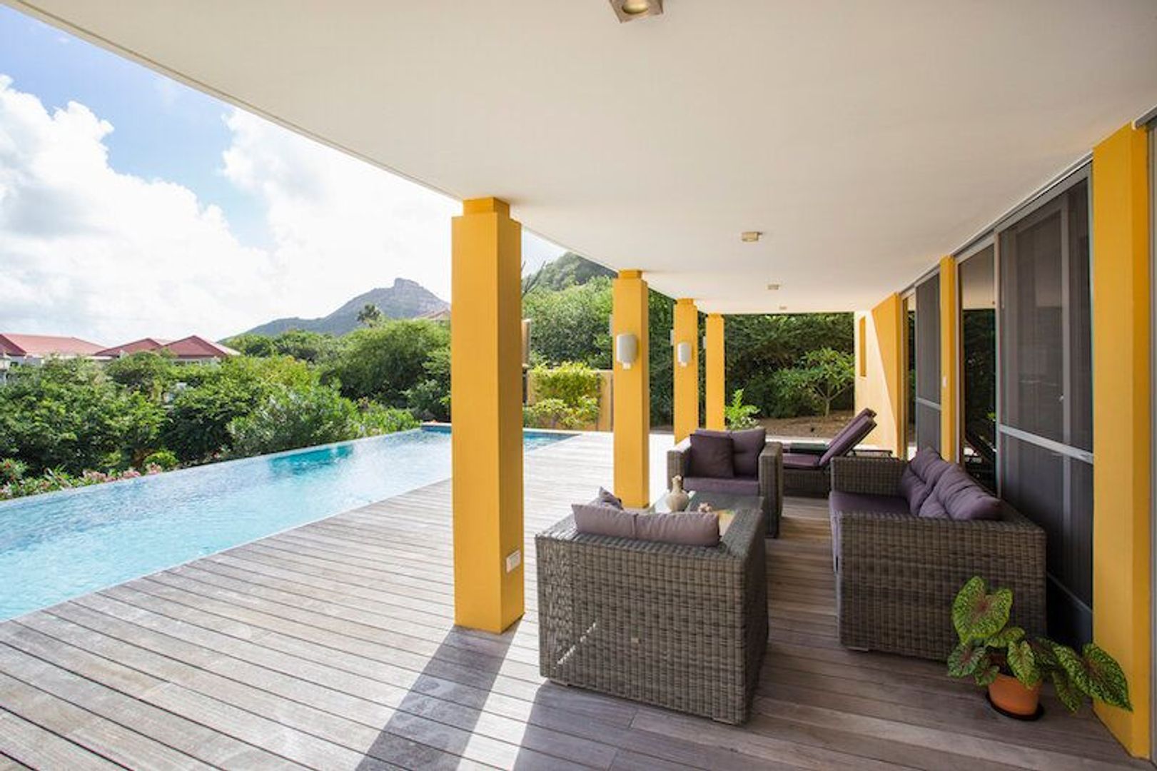 HET ONTWERP Deze woning is ontworpen door de bekende lokale architect David Bohorquez die zich voor de look en feel heeft laten inspireren door de landhuizen van Curacao. De indeling bestaat uit (1) een hoofdgebouw met één verdieping verbonden met een tweede gebouw waarin het hoofdslaapkamercomplex is opgenomen, (2) een apart bijgebouw met twee verdiepingen bestaande uit een ruime logeerkamersuite uitgerust met een complete badkamer en inloopkast - en een studeer/slaapkamer met een balkon met spectaculair uitzicht en (3) een derde gebouw met een garage voor twee auto's, de bijkeuken/extra slaapkamer, een gastenbadkamer en een grote berging. Qua indeling, afwerking en gebruikte materialen voldoet deze Villa aan alle wensen en eisen van het moderne wonen. De gekozen materialen vergen allemaal minimaal onderhoud. De architect hield ook rekening met alle belangrijke factoren voor het wonen op Curaçao. De woning is zeer goed gepositioneerd ten opzichte van de passaatwinden en het zontraject waardoor het (het hele jaar door) aangenaam aanvoelt door de (dwars)ventilatie. Er is weinig direct zonlicht dat de verschillende kamers binnenkomt. Alle deuren en ramen zijn voorzien van horren die ook helpen bij de ventilatie. INDELING Het woongedeelte bestaat uit een open keuken, woon- en eetgedeelte en geniet van een zogenaamd Kathedraalplafond (=hoog plafond) met diverse plafondventilatoren. Door de hoogte van het plafond is de temperatuur in de woonkamer altijd aangenaam. Via een groot aantal (aluminium-) schuifdeuren staat het woongedeelte direct in verbinding met de ruime (overdekte-) voorporch (=veranda) en fraaie achterpatio. De Europese keuken is voorzien van hoogwaardige luxe inbouwapparatuur en het aanrechtblad is gemaakt van 'Caesar Stone'. De badkamers zijn eveneens Europees en van hoge kwaliteit. Gehecht aan het hoofdgebouw is de master bedroom suite (bestaande uit een slaapgedeelte, inloopkast en luxe en ruime badkamer) plus een tweede slaapkamer/tv-kamer/studeerkamer voorzien van een airco. Los van het hoofdgebouw is het functionele bijgebouw: • Begane grond: Ruime logeerkamer met ligbad en handige inloopkast • 2e Verdieping: Een functionele studeerkamer met balkon met vrij uitzicht over het Spaanse Water en de Tafelberg en Seru Boca. ZWEMBAD Het overloopzwembad, grenzend aan de veranda aan de voorzijde, is meer dan 11 meter lang en is daarom een perfecte sportvoorziening - en zorgt met zijn zwembadverlichting voor een prachtige sfeer in de avond. TUIN De tuin is prachtig aangelegd en voorzien van veel tropische bomen en planten. OVERIG De woning beschikt over een ondergronds waterreservoir waarop alle dakgoten zijn aangesloten. Het water van de stortbak wordt gebruikt voor het zwembad en de irrigatie van de tuin. Warm water wordt geleverd door twee op het dak gemonteerde zonneboilers. Alle kamers zijn aangesloten op glasvezel internet en televisie. Alle daken volledig geïsoleerd. De woning is bijzonder energiezuinig en geniet van lage gebruikskosten. Bent u enthousiast en wilt u meer weten over deze villa op Seru Boca Curacao, bel of mail dan naar DE Makelaar van Curacao, International Fine Living
