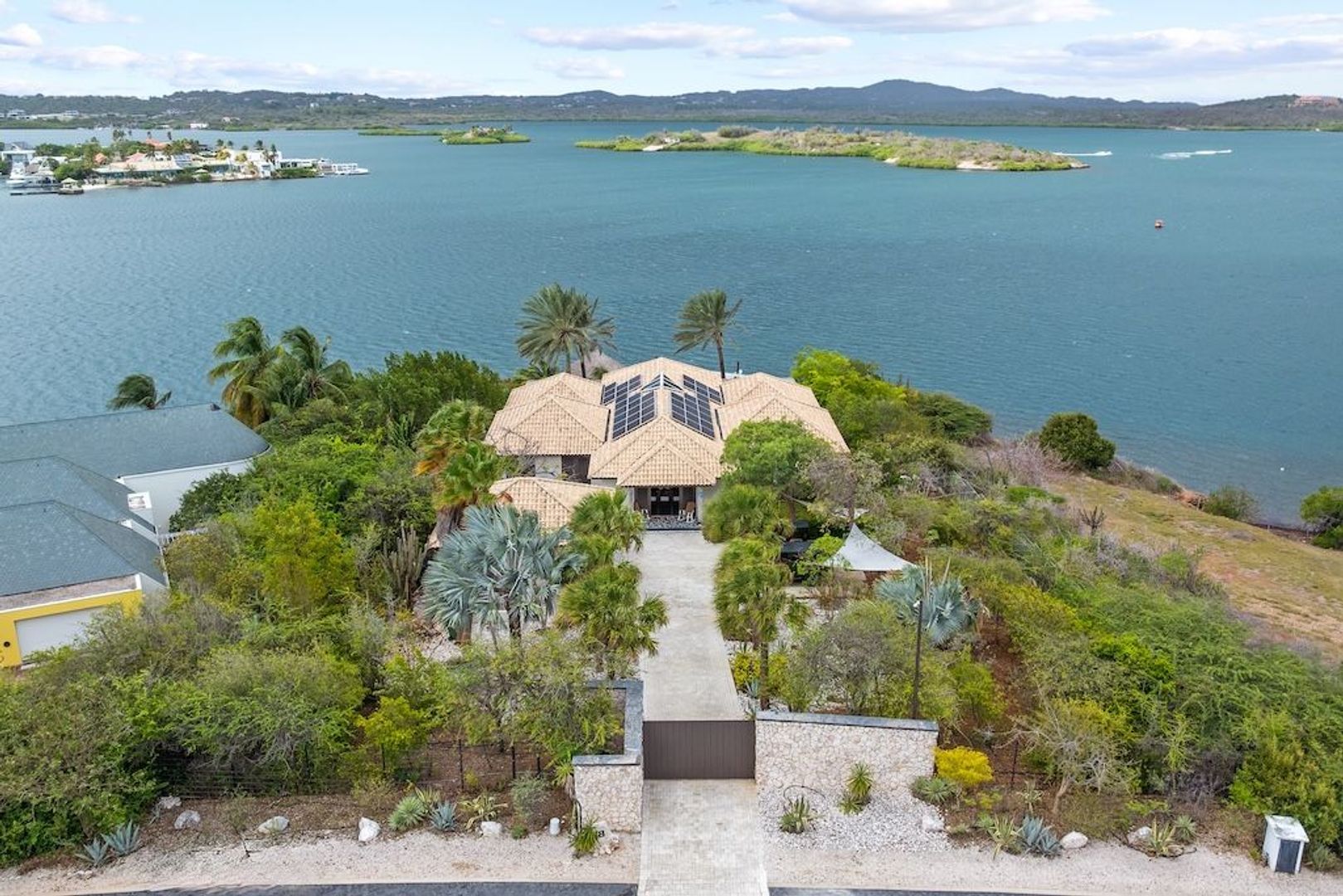 Wie droomt van het ultieme huis op Curaçao, komt vroeg of laat uit bij een plek waar alles samenvalt: absolute rust, directe verbinding met zee, maximale privacy, architectuur op topniveau en een locatie die tot de meest exclusieve van het eiland behoort. Aan het Spaanse Water, in Seru Boca Estate op Santa Barbara Plantation, ligt zo’n zeldzame villa. Een woning met een eigen strand, een privé aanlegsteiger en een uitstraling die moeiteloos internationaal niveau combineert met Caribische elegantie. Dit is geen standaard waterfront villa. Dit is wonen op wat velen beschouwen als de Golden Coast van Curaçao. Seru Boca – de Golden Coast van Curaçao Seru Boca wordt niet voor niets de Golden Coast van Curaçao genoemd. Dit deel van het eiland staat bekend om zijn uitzonderlijke combinatie van veiligheid, rust en exclusiviteit. De wijk ligt direct aan het Spaanse Water en bevindt zich recht tegenover Jan Sofat, waardoor je geniet van beschut vaarwater met directe toegang tot open zee. Watersport, varen en het leven op en rond het water zijn hier vanzelfsprekend onderdeel van het dagelijks ritme. Seru Boca Estate maakt deel uit van Santa Barbara Plantation, een van de meest prestigieuze en best beveiligde resorts van Curaçao. De beveiliging is professioneel georganiseerd en 24/7 aanwezig, zowel op land als op het water. Dit hoge veiligheidsniveau is een belangrijke reden dat internationale ondernemers, vermogende families en zelfs een wereldberoemde DJ hier hun thuis hebben gevonden. Discretie en privacy zijn hier geen luxe, maar standaard. Op korte afstand ligt bovendien de beroemde Pete Dye Old Quarry Golf Course, internationaal geroemd en herhaaldelijk uitgeroepen tot de mooiste golfbaan van het Caribisch gebied. Wonen aan zee én direct bij een golfcourse is op Curaçao zeldzaam en onderstreept het unieke karakter van deze locatie. Architectuur met rust, balans en karakter De villa is ontworpen vanuit symmetrie en verfijning. De statige architectuur straalt rust en balans uit en sluit naadloos aan op de natuurlijke omgeving. Via een elektrische poort rijd je over een met palmen omzoomde oprijlaan het perceel op, waar meteen het gevoel ontstaat dat je een privé domein betreedt. Bij binnenkomst trekt het plafond direct de aandacht. Het loopt door tot in de nok van het huis en bestaat uit een artistiek lijnenspel van houten balken en panelen, wat de entree een sculpturaal karakter geeft. Deze architectonische handtekening zet de toon voor de rest van de woning. Door de gehele villa is gekozen voor een consistente, hoogwaardige basis: natuurstenen vloeren, licht gestucte wanden en houten deuren die zorgen voor eenheid en rust. Het interieur is ontworpen door de gerenommeerde binnenhuisarchitect Osiris Hertman. Zijn signatuur is duidelijk voelbaar: een serene basis gecombineerd met warme kleuren, uitgesproken materialen en zorgvuldig gekozen accenten. Denk aan junglebehang in de foyer, rijke texturen en meubels die comfort en luxe moeiteloos samenbrengen. Het resultaat is geen showroom, maar een huis dat leeft en waarin elke ruimte een eigen sfeer heeft, zonder de harmonie te verliezen. Leven met licht, ruimte en uitzicht De villa beschikt over zes slaapkamers en vijf badkamers, verdeeld over twee woonlagen. De indeling is ruim, logisch en bijzonder geschikt voor zowel permanente bewoning als comfortabel verblijf met familie en gasten. De living vormt het hart van de woning en staat in directe verbinding met het terras en het Spaanse Water. Delen van het plafond zijn uitgevoerd in glas, waardoor de helderblauwe Caribische lucht letterlijk onderdeel wordt van het interieur. Grote raampartijen en openslaande deuren zorgen ervoor dat binnen en buiten naadloos in elkaar overlopen. Aangrenzend bevindt zich een afsluitbare tv- en relaxruimte, ideaal voor rustige avonden of om je even terug te trekken. De open keuken is ontworpen voor mensen die houden van koken en samenzijn. Uitgerust met hoogwaardige apparatuur van onder andere Viking en Sub-Zero, een royaal kookeiland en directe toegang tot het terras, is dit een plek waar lange avonden met vrienden en familie vanzelf ontstaan. Vanuit de keuken kijk je uit over het water, waardoor zelfs alledaagse momenten een bijzonder karakter krijgen. Slapen in luxe en rust De master bedroom op de woonverdieping is een volwaardige privé suite. Met openslaande deuren naar het terras, uitzicht op de tropische tuin en een directe verbinding met de royale badkamer en suite, voelt deze ruimte als een luxe boutique hotel, maar dan met de intimiteit van thuis. De badkamer beschikt over een vrijstaand ligbad, dubbele wastafel, inloopdouche en zorgvuldig ontworpen kastruimte. Op de benedenverdieping bevinden zich vier extra slaapkamers en drie badkamers. Deze verdieping is ruim opgezet en biedt volop privacy voor gasten of gezinsleden. Een brede corridor met zithoek verbindt de kamers en draagt bij aan het ontspannen, bijna resortachtige gevoel van deze woning. Buitenleven op het hoogste niveau Op Curaçao speelt het leven zich grotendeels buiten af, en deze villa is daar volledig op ingericht. Over de volle breedte van de woning strekt zich een royaal terras uit met meerdere lounge- en eetgedeeltes. Het zwembad, prachtig geïntegreerd in het terras, biedt uitzicht over het Spaanse Water en de Tafelberg en vormt een natuurlijke ontmoetingsplek gedurende de dag. De buitenkeuken met bar en overdekte lounge maakt het mogelijk om het hele jaar door buiten te leven. Van lange lunches tot sfeervolle diners bij zonsondergang: deze villa nodigt uit tot genieten zonder concessies. Een absoluut unicum is het privéstrand en de eigen aanlegsteiger. Slechts weinig huizen op Curaçao beschikken over deze combinatie. Vanuit je eigen tuin stap je zo op de boot en vaar je het Spaanse Water op. Onder de palapa geniet je van schaduw, rust en uitzicht, terwijl het zandstrand een ongekende mate van vrijheid en privacy biedt. Dit is wonen aan het water in zijn puurste vorm. Zowel t