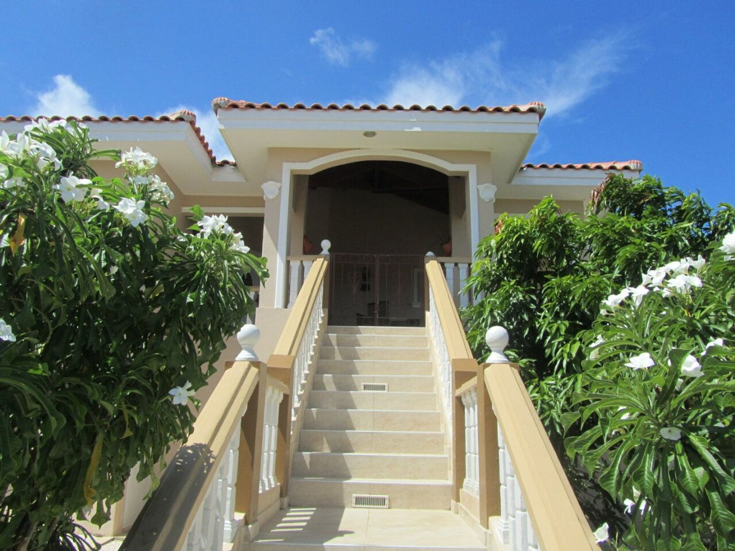 Dit prachtige grote huis is gelegen aan Sorsaka, dicht bij de Caracusbaaiweg. Bij aankomst bij het volledig omheinde huis valt de voortuin met het pad naar de entree meteen op. Daarnaast is er een lange oprijlaan richting de achterkant van het huis waar een carport (2 auto’s) aanwezig is. Bij de entree van het huis aan de voorkant is een overdekte porch waar u heerlijk koel kan zitten en kan genieten van het schitterende uitzicht. Bij binnenkomst van het huis komt u in de ruime woonkamer met aaneengesloten een moderne open keuken, voorzien van een oven en gasfornuis. Wat meteen opvalt in het huis zijn de zogenaamde “ cathedral ceilings” ofwel de hoge plafonds. Verder omvat deze verdieping 3 slaapkamers met 2 badkamers (met toilet en douche) en een masterbedroom met ruime walk-in closet en badkamer. Deze masterbedroom is voorzien van schitterende glas-in-lood ramen. Al deze slaapkamers zijn voorzien van airconditioning en een ceiling-fan. De benedenverdieping omvat 2 slaapkamers, een badkamer, een wasruimte, een berging en een woonkamer. Ook is er de optie om een keukentje te bouwen. De achtertuin is voorzien van een overdekte porch. Er zijn mogelijkheden om een zwembad te bouwen. Verder vindt u er de carport en een hele mooie barbecue waar u lekker kan vertoeven en eten.