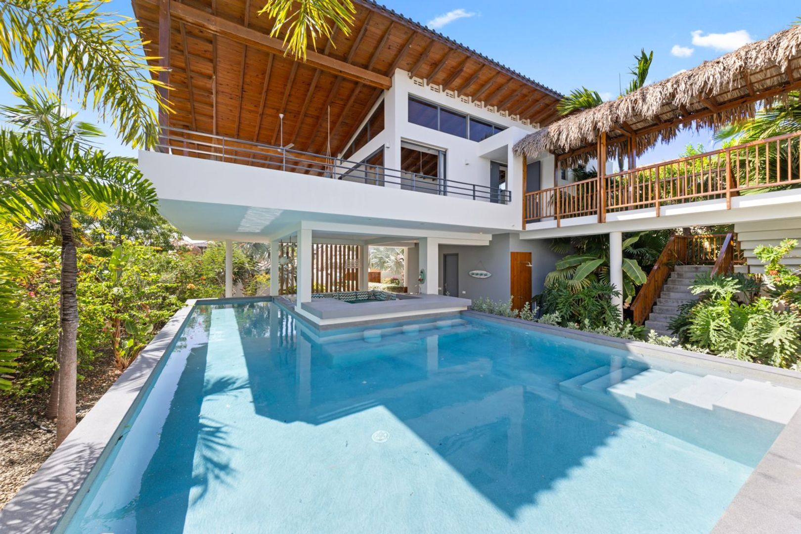 Gelegen in de populaire wijk Vista Royal en op slechts enkele stappen van Jan Thiel Beach, biedt deze eigentijdse villa directe toegang tot een breed aanbod aan voorzieningen zoals boetiekwinkels, restaurants, fitnesscentra, spa’s, beachclubs, casino’s en de Caribische stranden. De villa is ontworpen door architect Michael Durgaram en combineert Balinese elementen met modern tropisch wonen. Centraal in het ontwerp ligt een opvallend open atrium met weelderige beplanting, een ruim en origineel vormgegeven zoutwaterzwembad, een lounge bij het zwembad, een wetbar en een buitenkeuken — voor een moeiteloze overgang tussen binnen en buiten. Een bijzonder architectonisch detail is de interne loopbrug die het hoofdwoonvertrek verbindt met drie slaapkamers, allen voorzien van airconditioning. De master suite beschikt over een eigen badkamer met spa-elementen; de twee andere slaapkamers delen een tweede badkamer. De open keuken, uitgerust met alle essentiële apparatuur, sluit via een op maat gemaakte bar aan op het grote overdekte terras met vrij uitzicht op de Caribische Zee en de omgeving. Op de begane grond bevinden zich nog twee slaapkamers als onderdeel van een aparte gastensuite met een eigen badkamer en directe toegang tot het atrium via schuifdeuren. De woning beschikt verder over een garage, 11 zonnepanelen en een zonneboiler, wat bijdraagt aan een efficiënt en duurzaam energieverbruik. Of het nu gaat om een tweede woning of een investeringsobject, deze villa profiteert van het sterke verhuurpotentieel van Vista Royal, de hoge bezettingsgraad en de stabiele waardegroei. Interesse? Neemt u dan contact op met Jacqueline Remmelts voor meer informatie of om een (online) bezichtiging in te plannen via +599 9 5123803 (ook via WhatsApp).